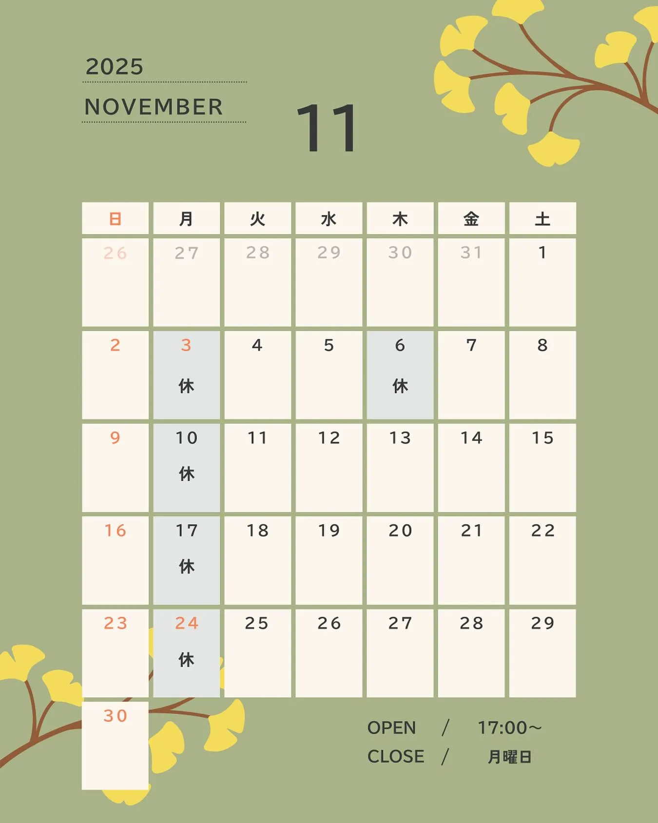 🍂11月の営業日についてお知らせ 2025/10/19 🍂11月の営業日についてお知らせ 毎週月曜日の定休日に加え、 6日(水)は私用で臨時休業を頂戴いたします。 秋の味わいとともに、皆さまのご来店を 心よりお待ち申し上げております。 ⸻ #和食 #割烹 #日本料理 #11月のお知らせ #営業日 #季節の料理 #旬の味 #ご予約承ります